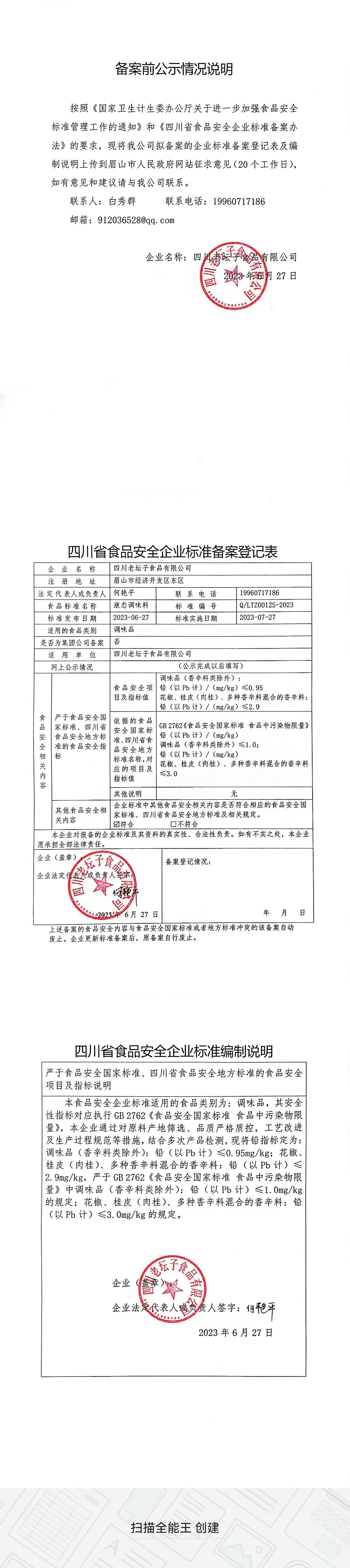 四川老坛子食品有限公司--液态调味料(公示截止期2023.7.31)