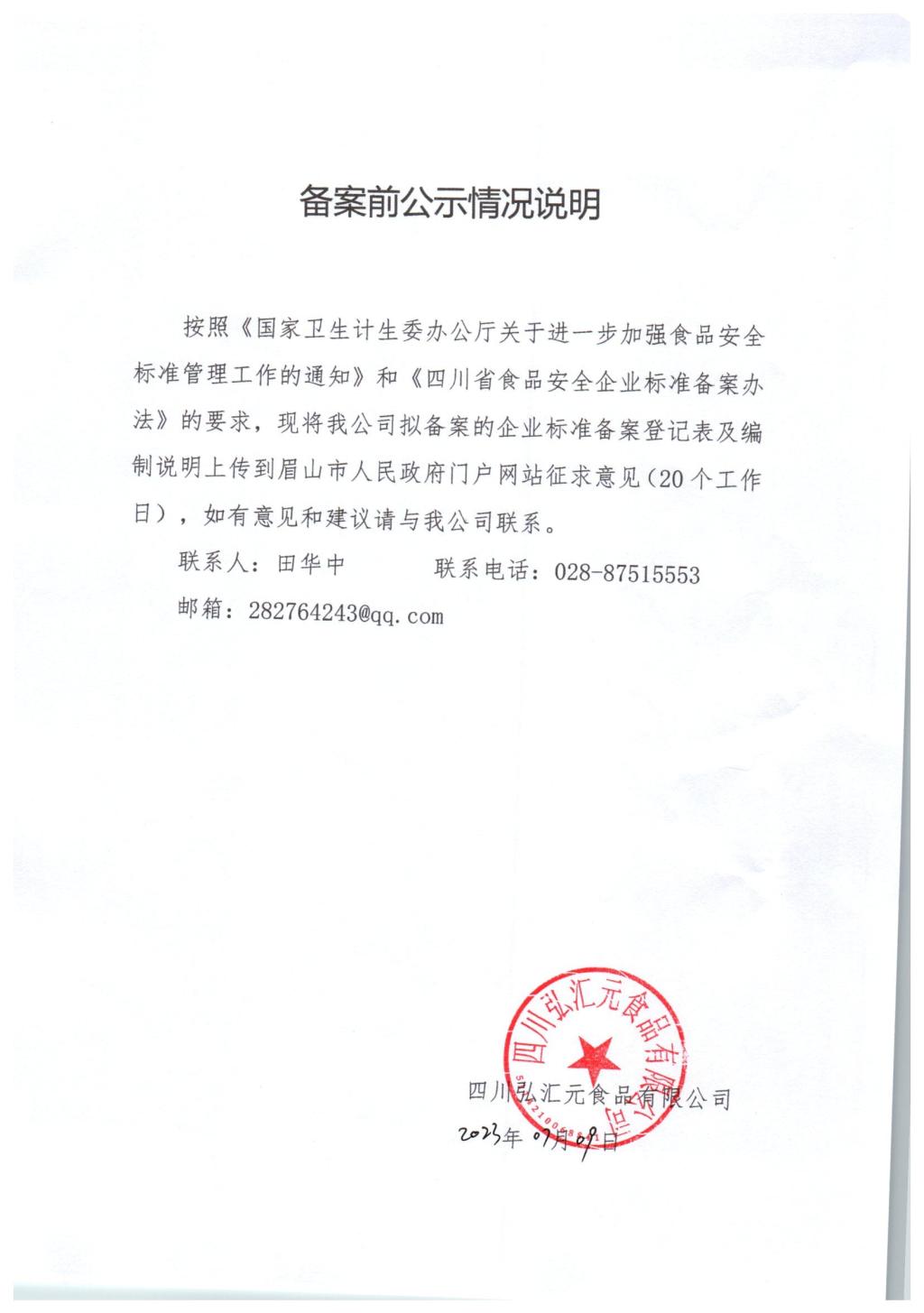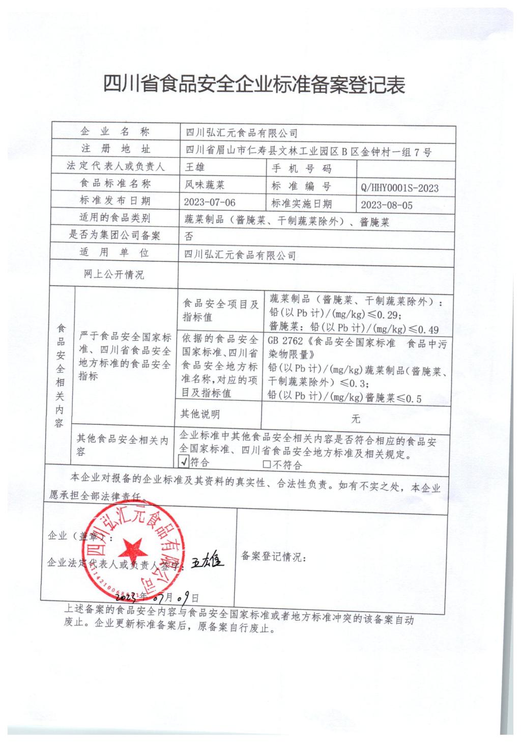 四川弘汇元食品有限公司-风味蔬菜(公示截止日期2023.8.7)