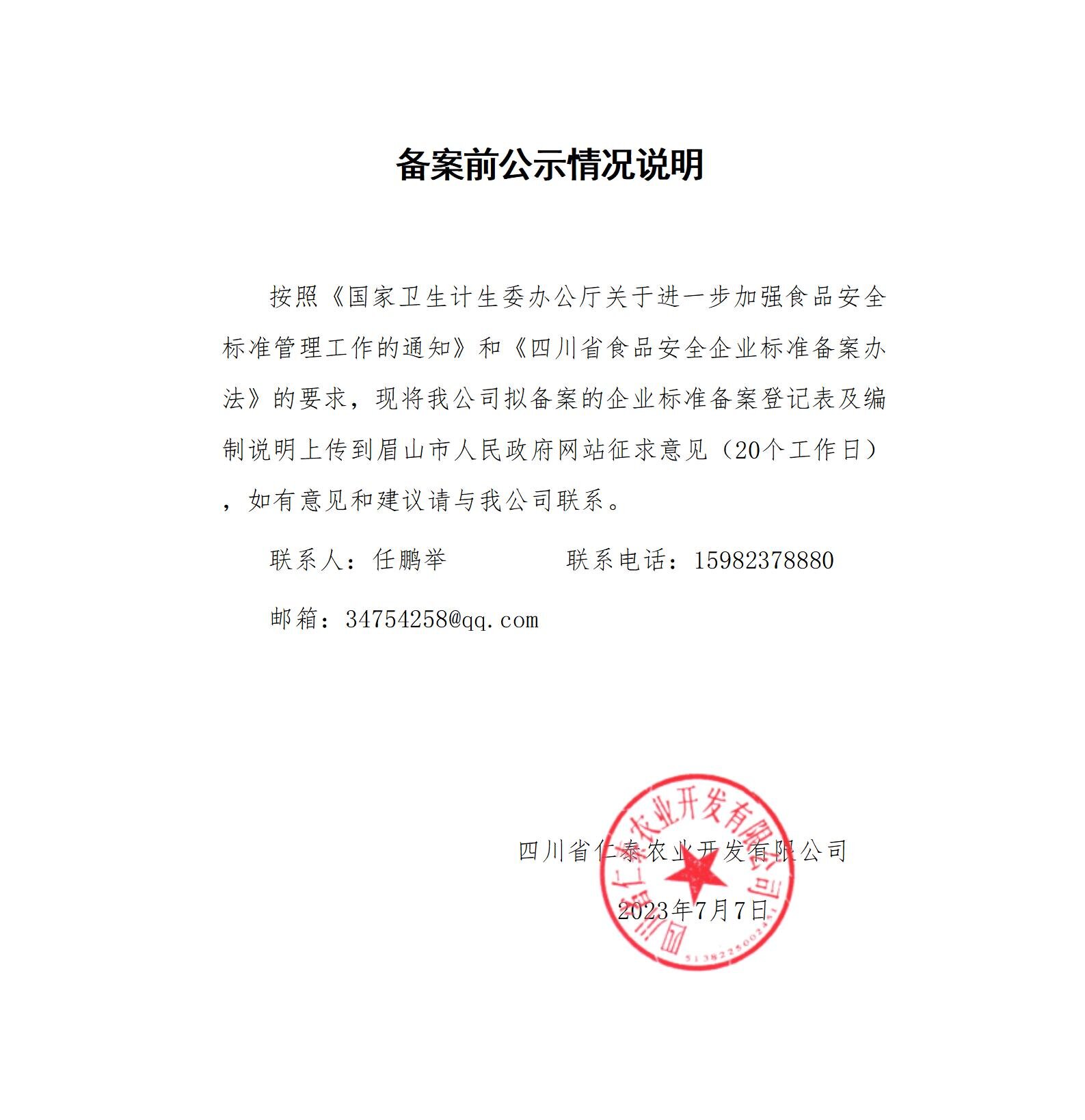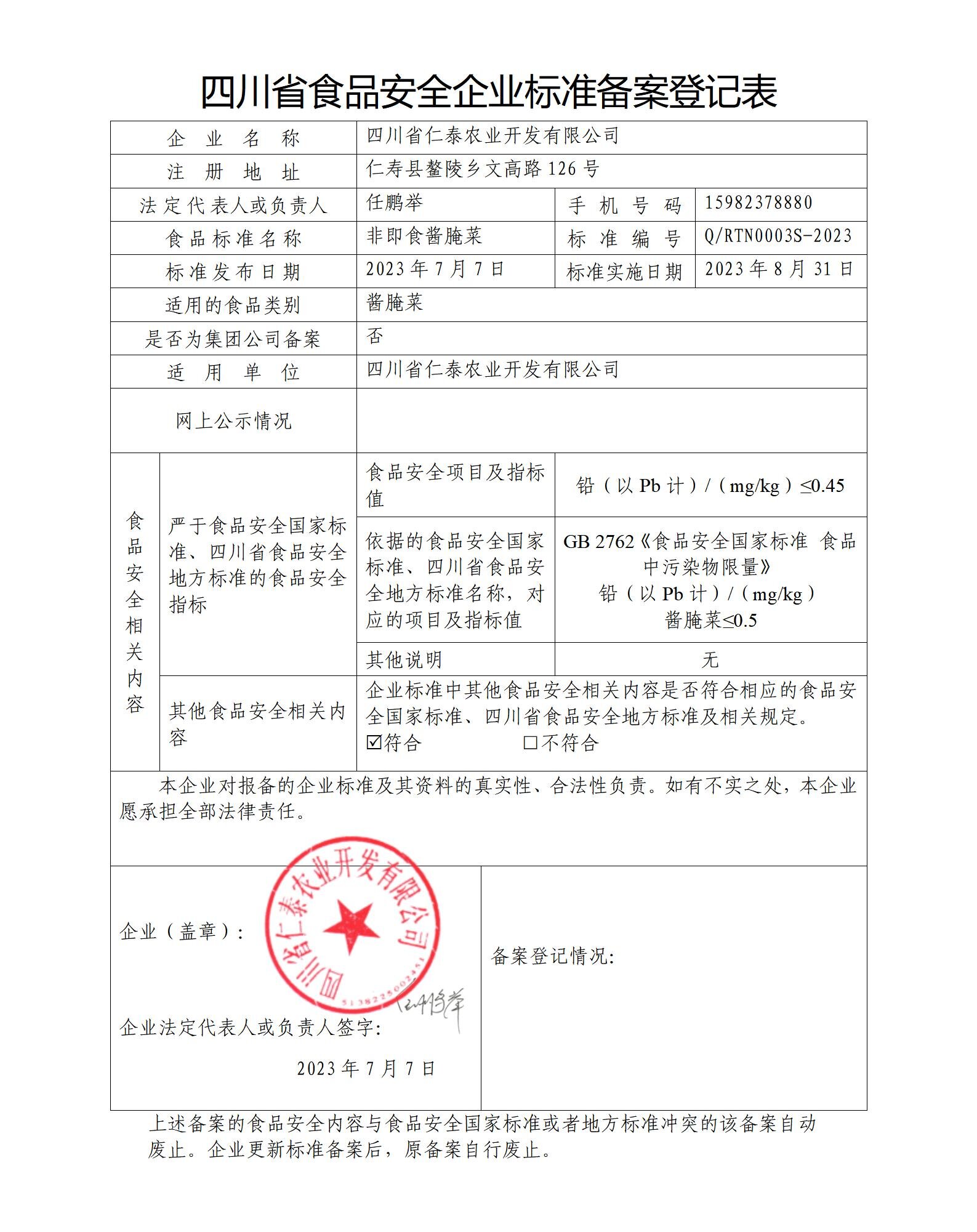 四川省仁泰农业开发有限公司-非即食酱腌菜(公示截止日期2023.8.7)