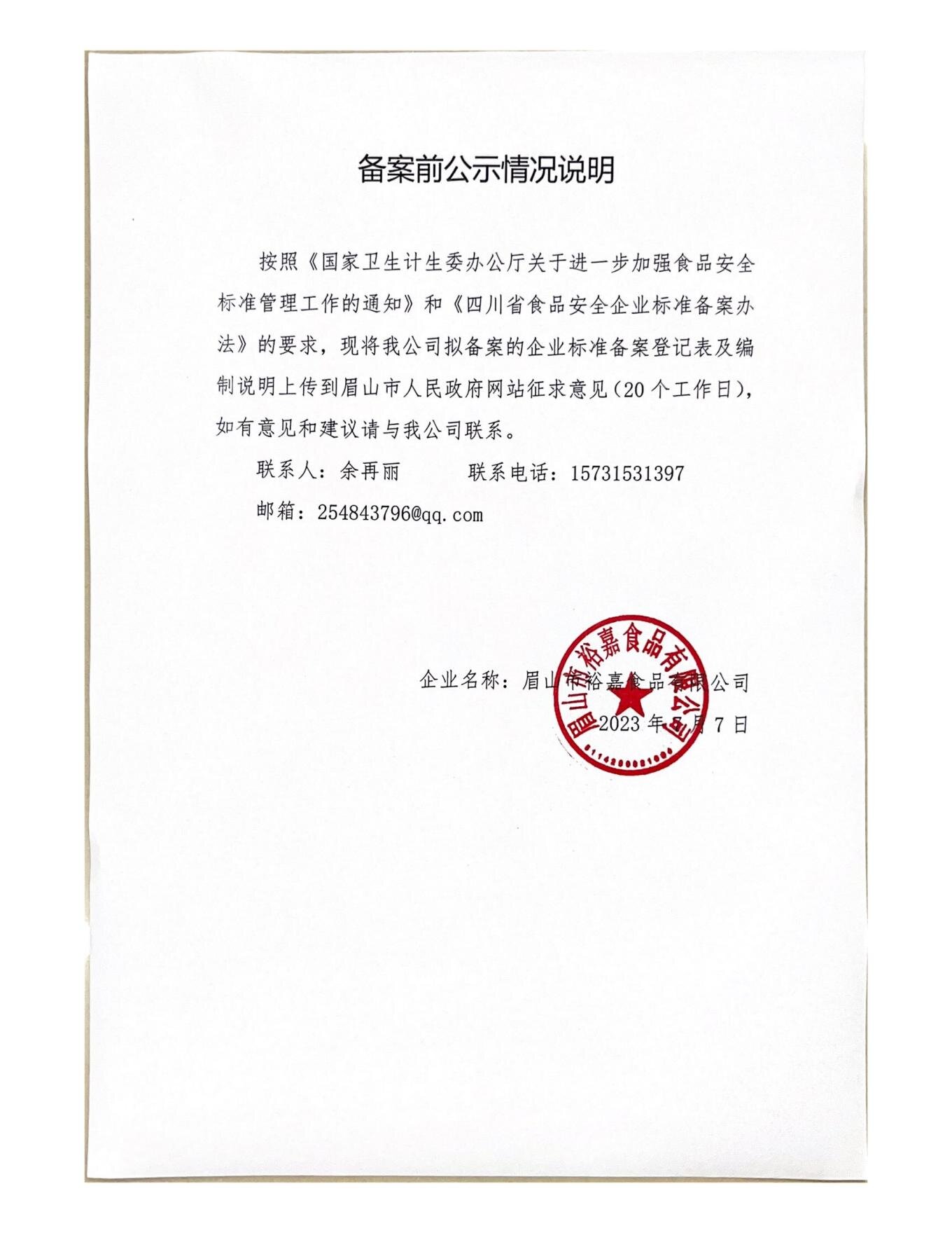 眉山市裕嘉食品有限公司-调味面制品(公示截止期2023.8.14)