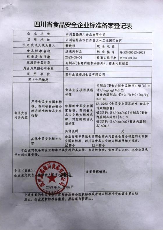 四川鑫盛海川食品有限公司-速冻肉制品(公示时间2023.8.7—2023.9.1)