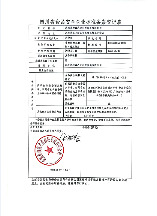 洪雅县和鑫农业科技发展有限公司-非发酵型花椒(藤椒)酱及制品(公示时间2023.8.14-2023.9.11)
