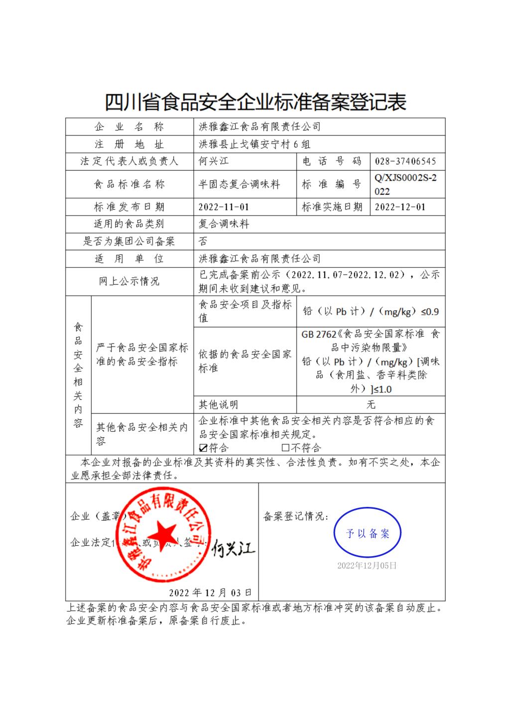 洪雅鑫江食品有限责任公司-半固态复合调味料