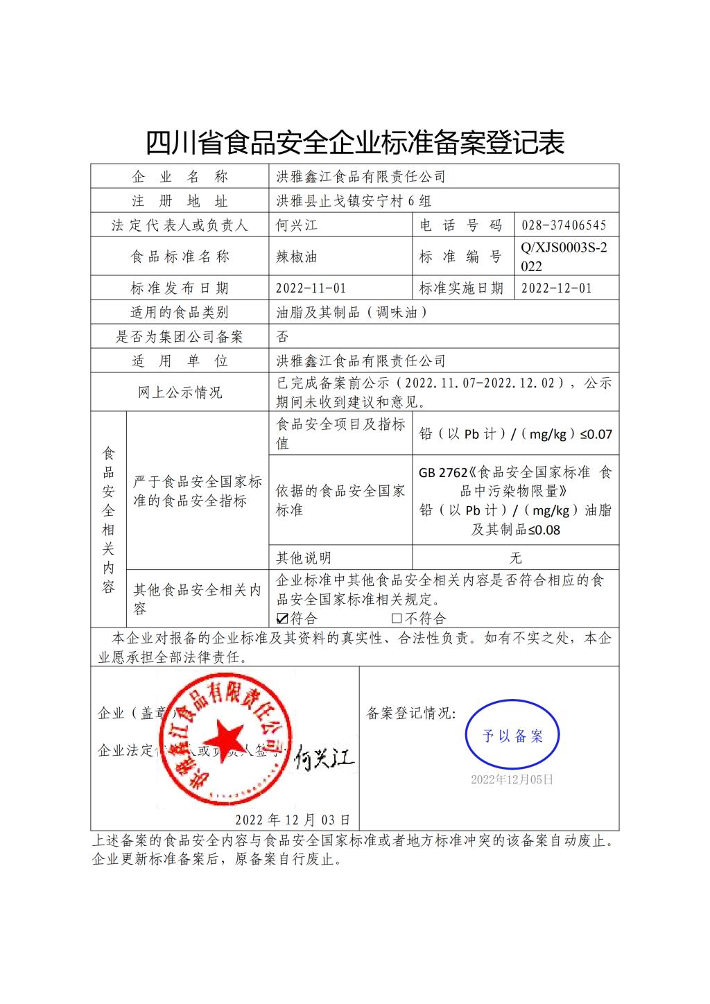 洪雅鑫江食品有限责任公司洪雅鑫江食品有限责任公司-辣椒油