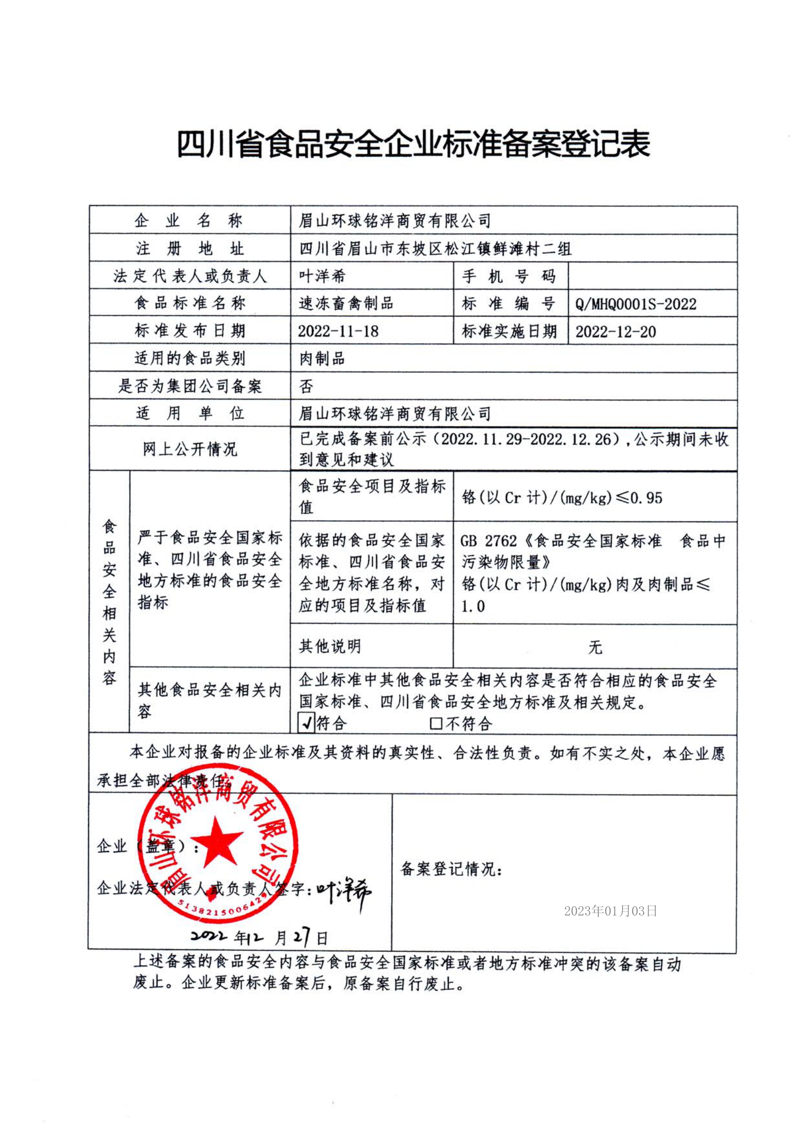眉山环球铭洋商贸有限公司-速冻畜禽制品