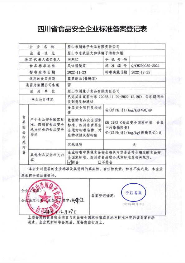 眉山市川妹子食品有限责任公司-风味酱腌菜