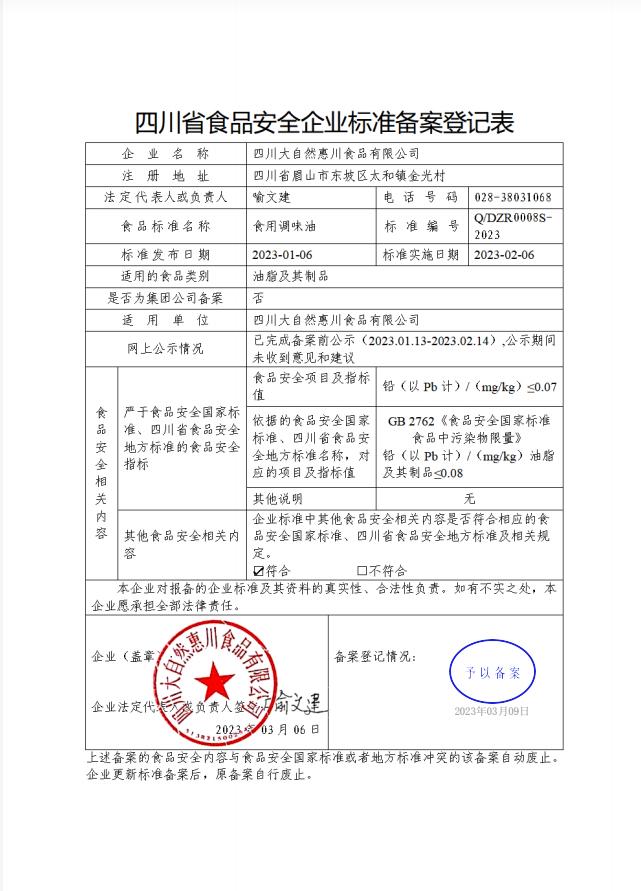 四川大自然惠川食品有限公司-食用调味油