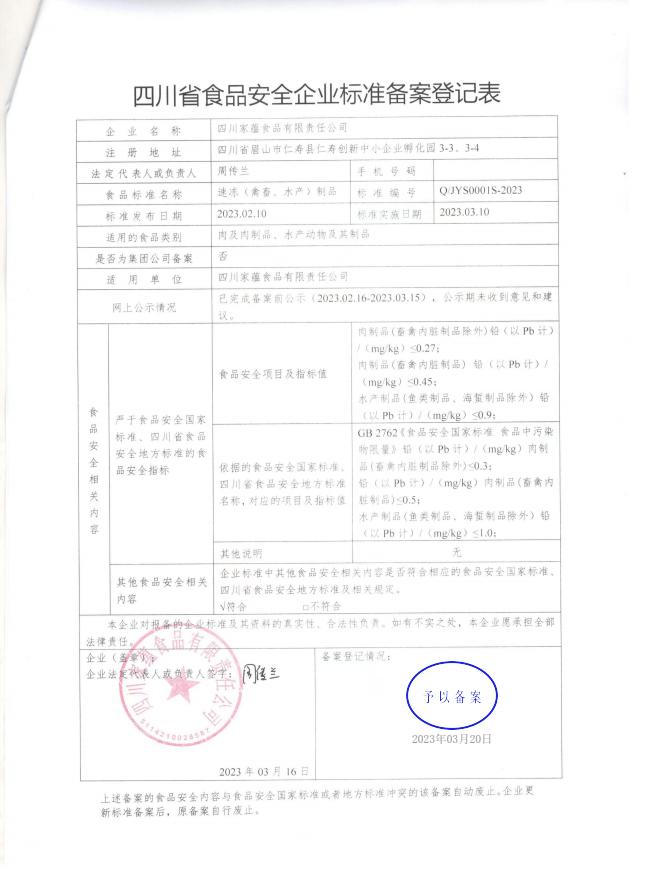 四川家蕴食品有限责任公司-速冻(禽畜、水产)制品
