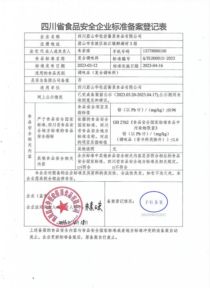 四川眉山华伦宏酱菜食品有限公司-复合调味料