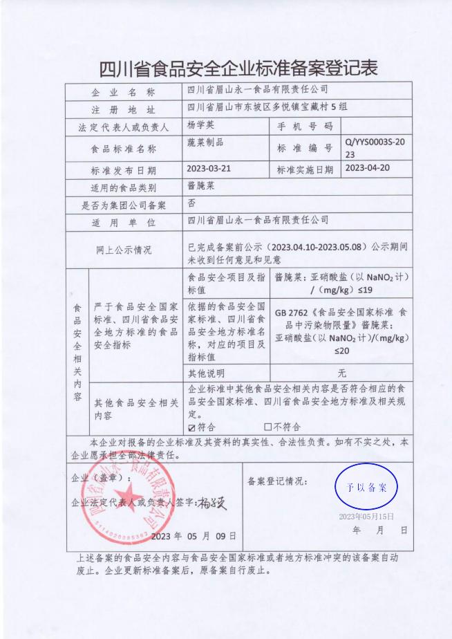 四川省眉山永一食品有限责任公司-蔬菜制品