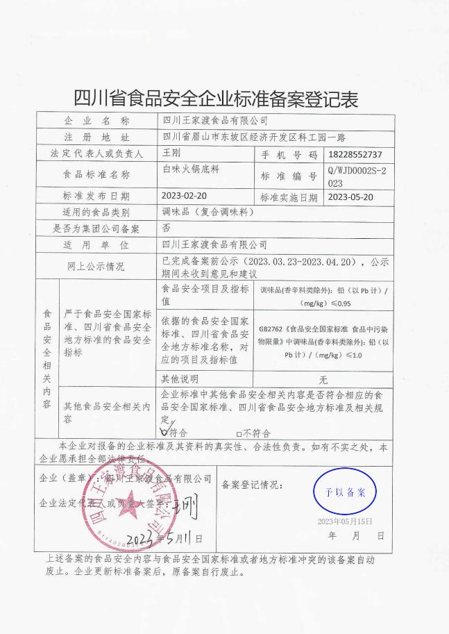 四川王家渡食品有限公司-白味火锅底料