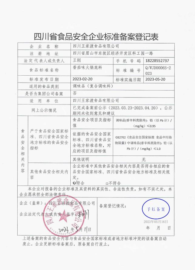 四川王家渡食品有限公司-番茄味火锅底料