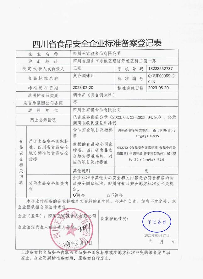 四川王家渡食品有限公司-复合调味汁