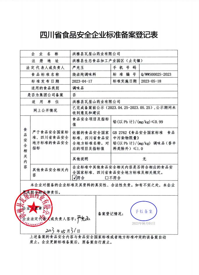 洪雅县瓦屋山药业有限公司-烧卤炖调味料