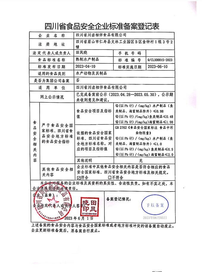 四川省川卤相伴食品有限公司-熟制水产制品