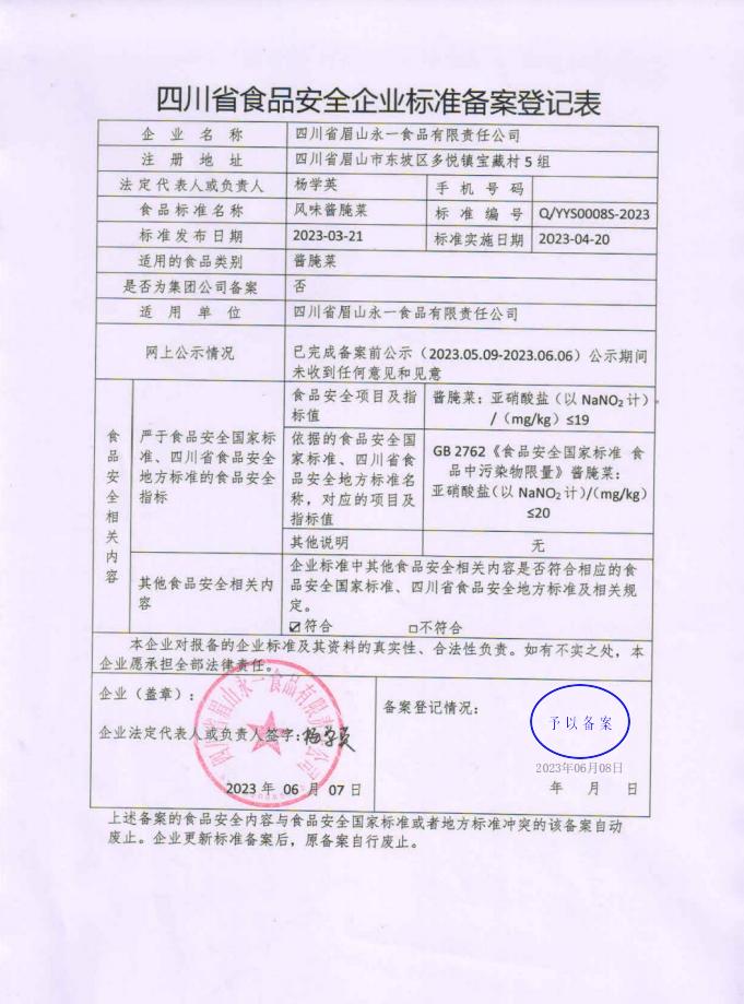 四川省眉山永一食品有限责任公司-风味酱腌菜