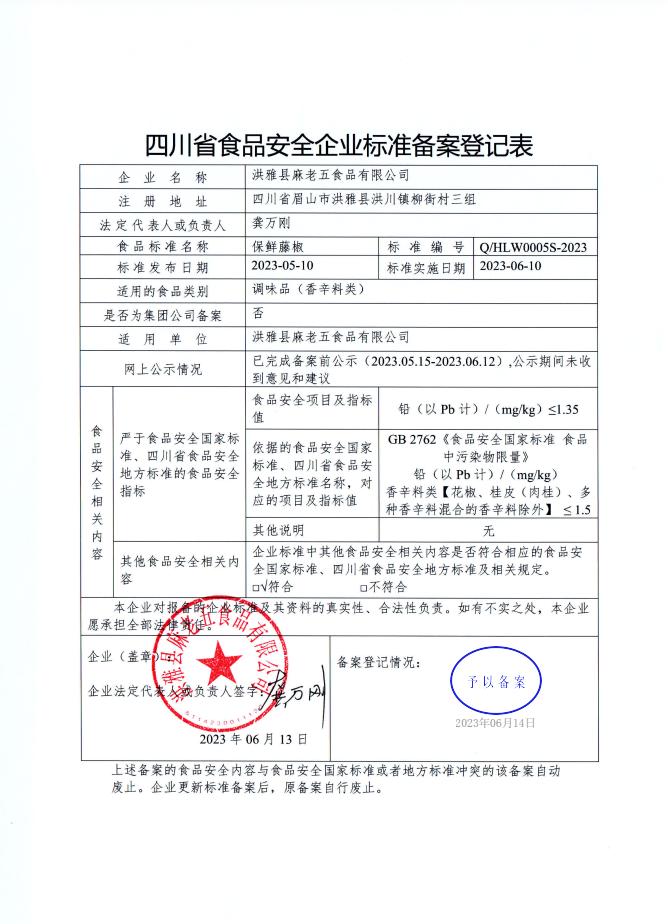 洪雅县麻老五食品有限公司-保鲜藤椒