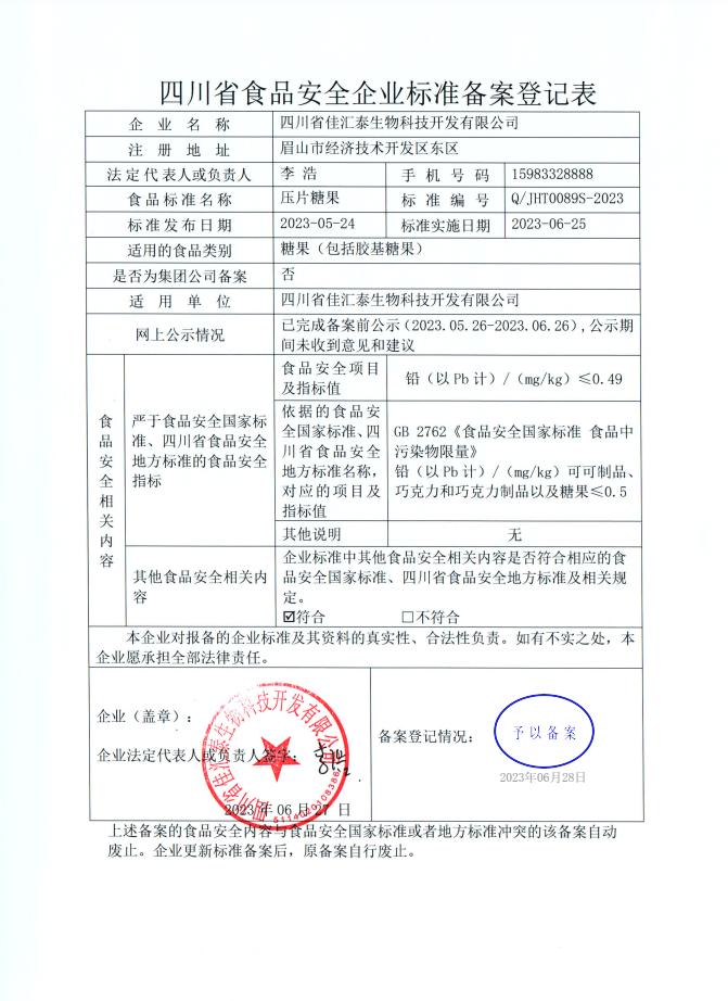 四川省佳汇泰生物科技开发有限公司-压片糖果