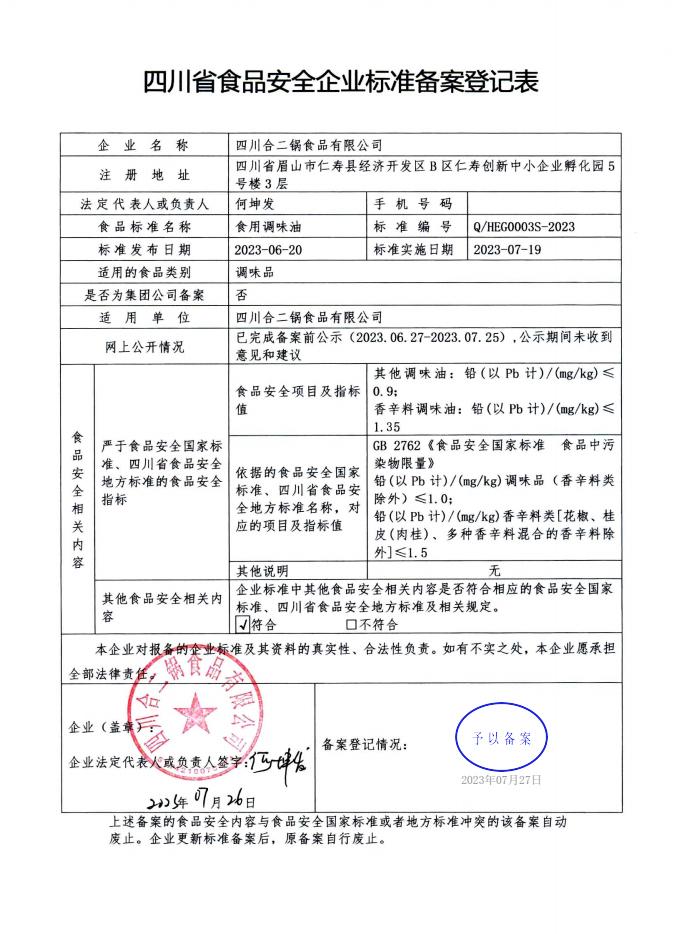 四川合二锅食品有限公司-食用调味油