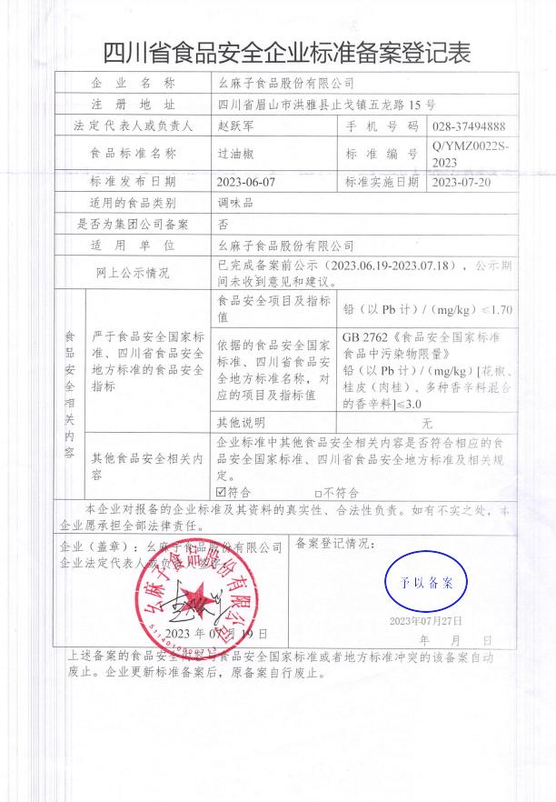 幺麻子食品股份有限公司-过油椒