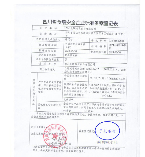 四川众联南北食品有限公司-半固态复合调味料(酱)