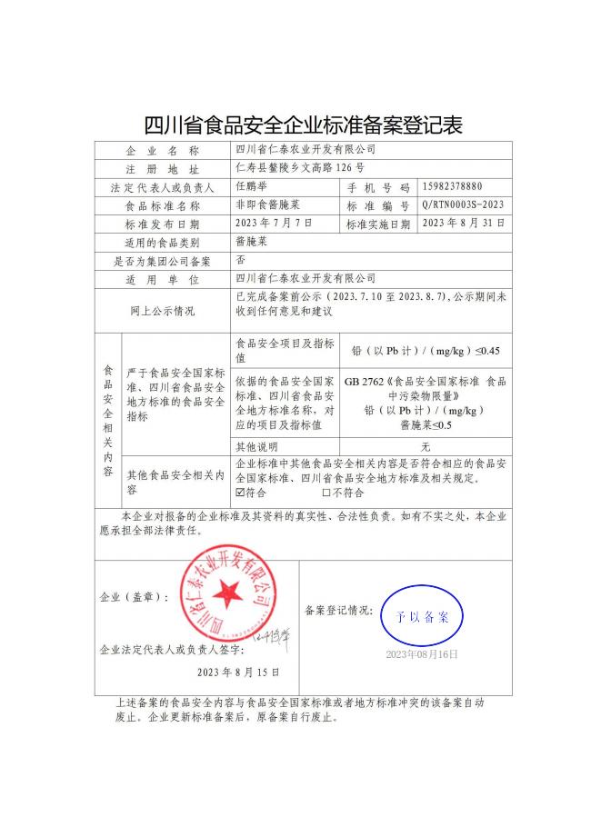 四川省仁泰农业开发有限公司-非即食酱腌菜