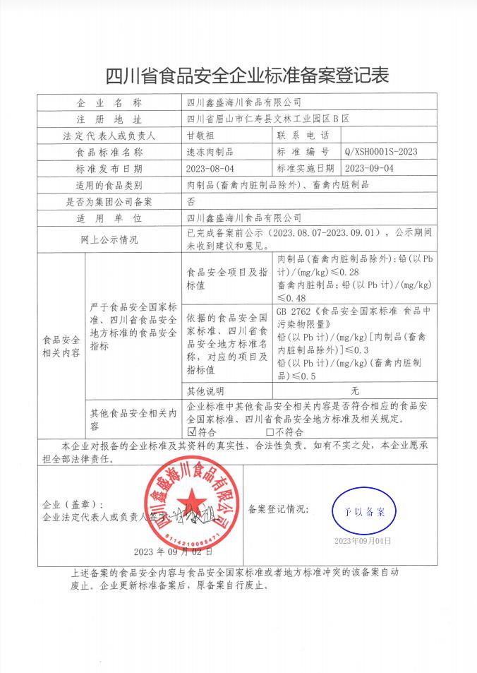 四川鑫盛海川食品有限公司-速冻肉制品