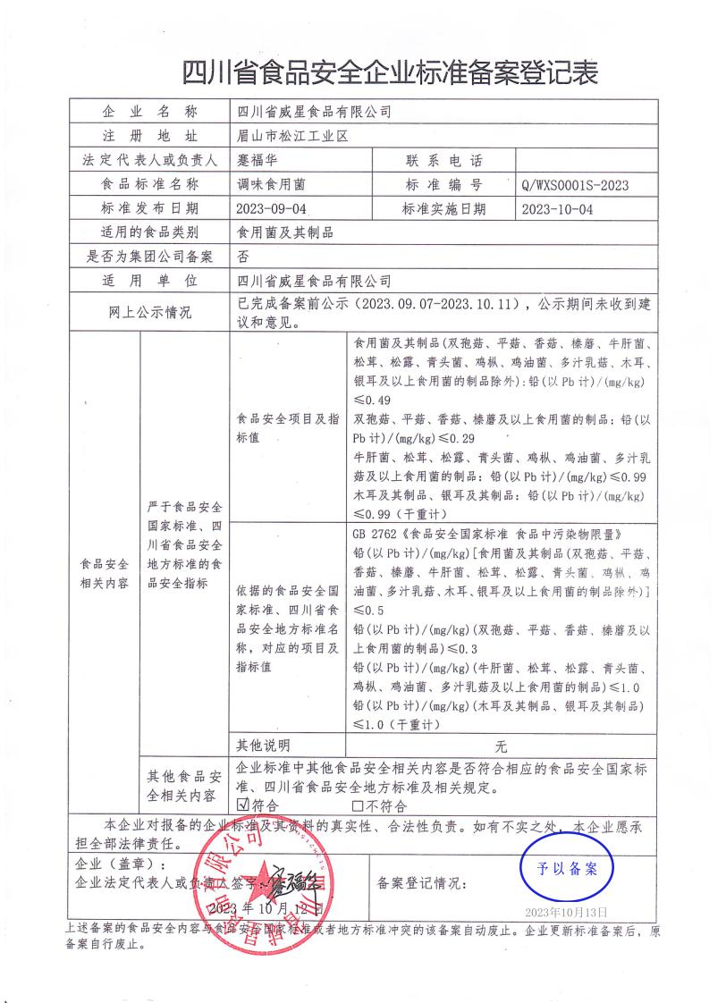 四川省威星食品有限公司-调味食用菌