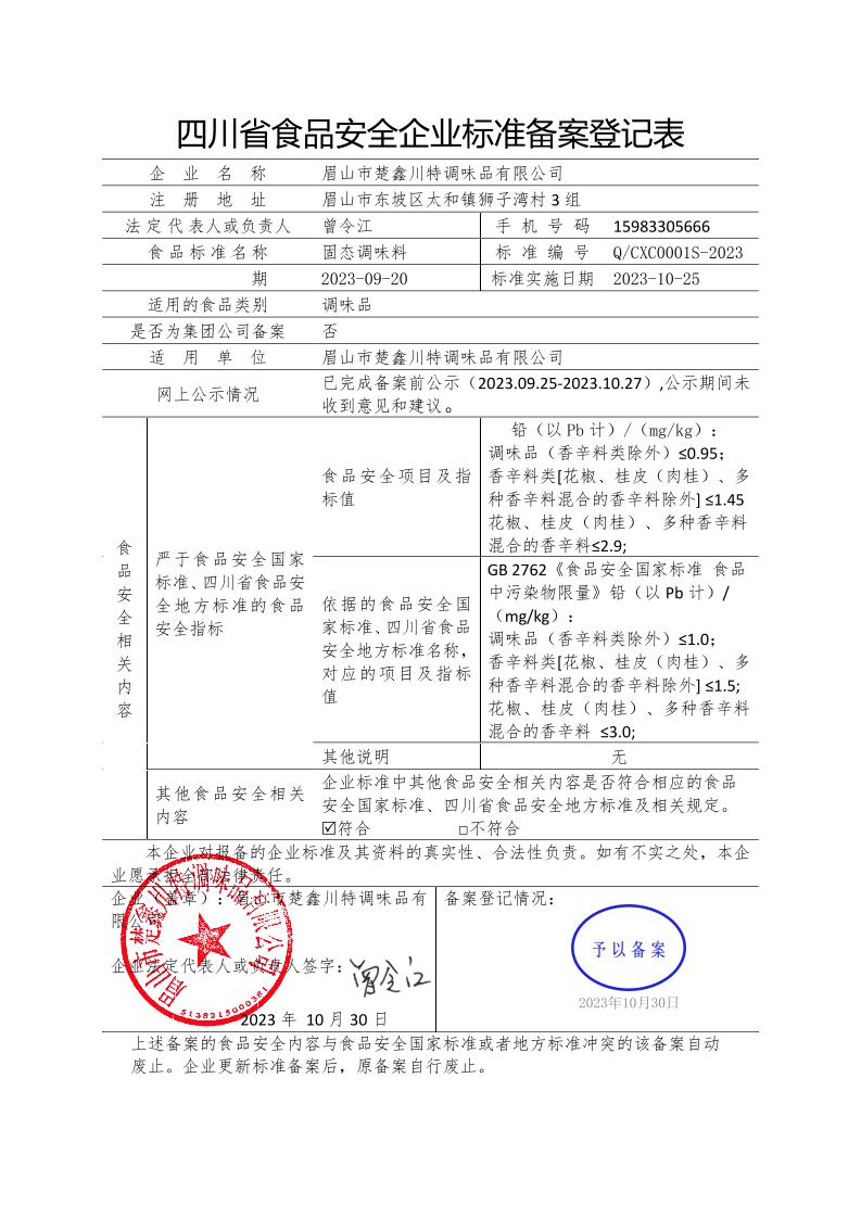 眉山市楚鑫川特调味品有限公司-固态调味料