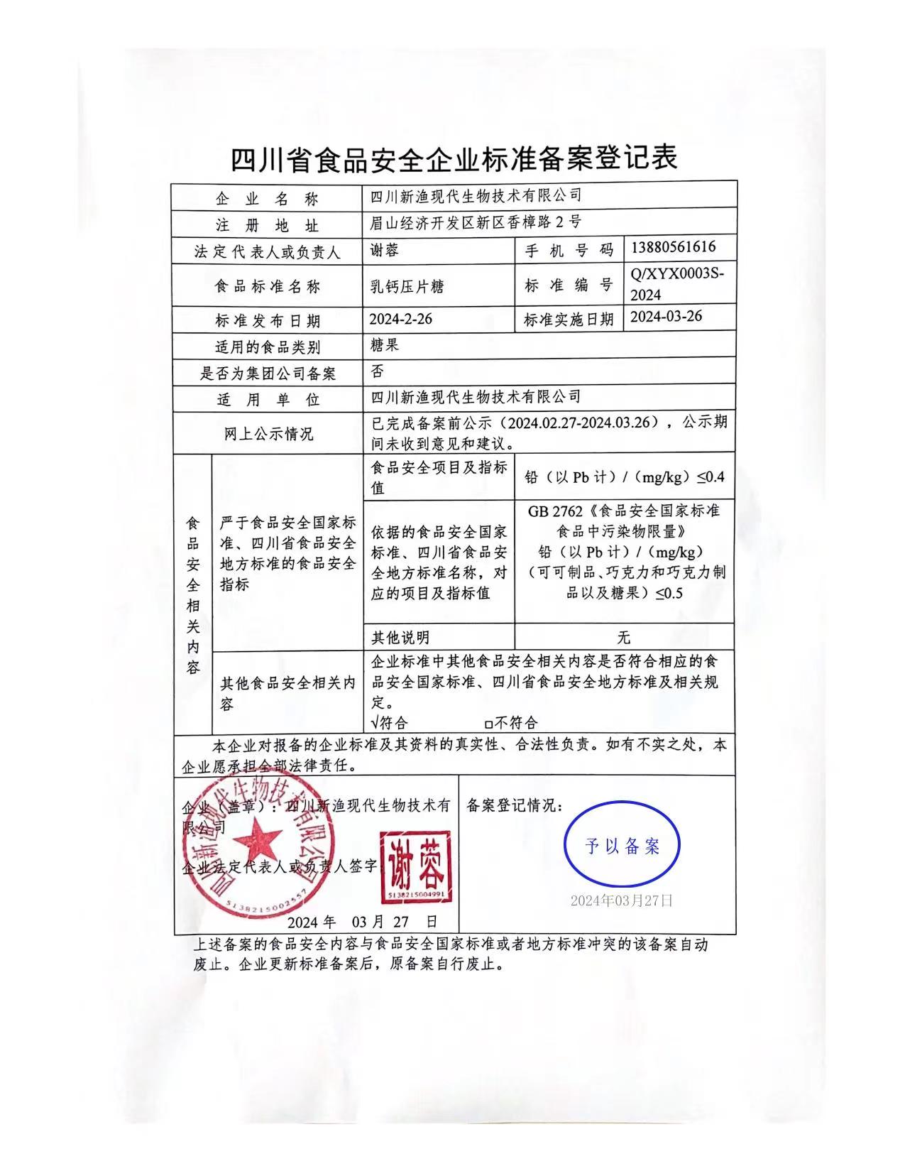 四川新渔现代生物技术有限公司—乳钙压片糖