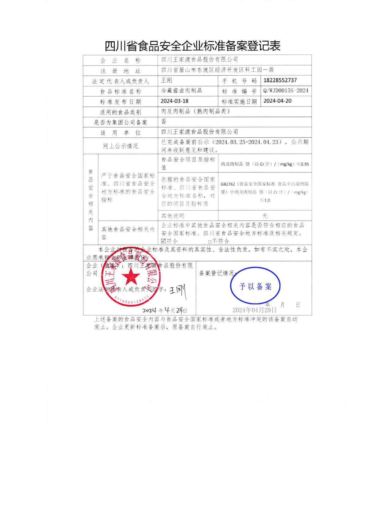 四川王家渡食品股份有限公司-冷藏酱卤肉制品