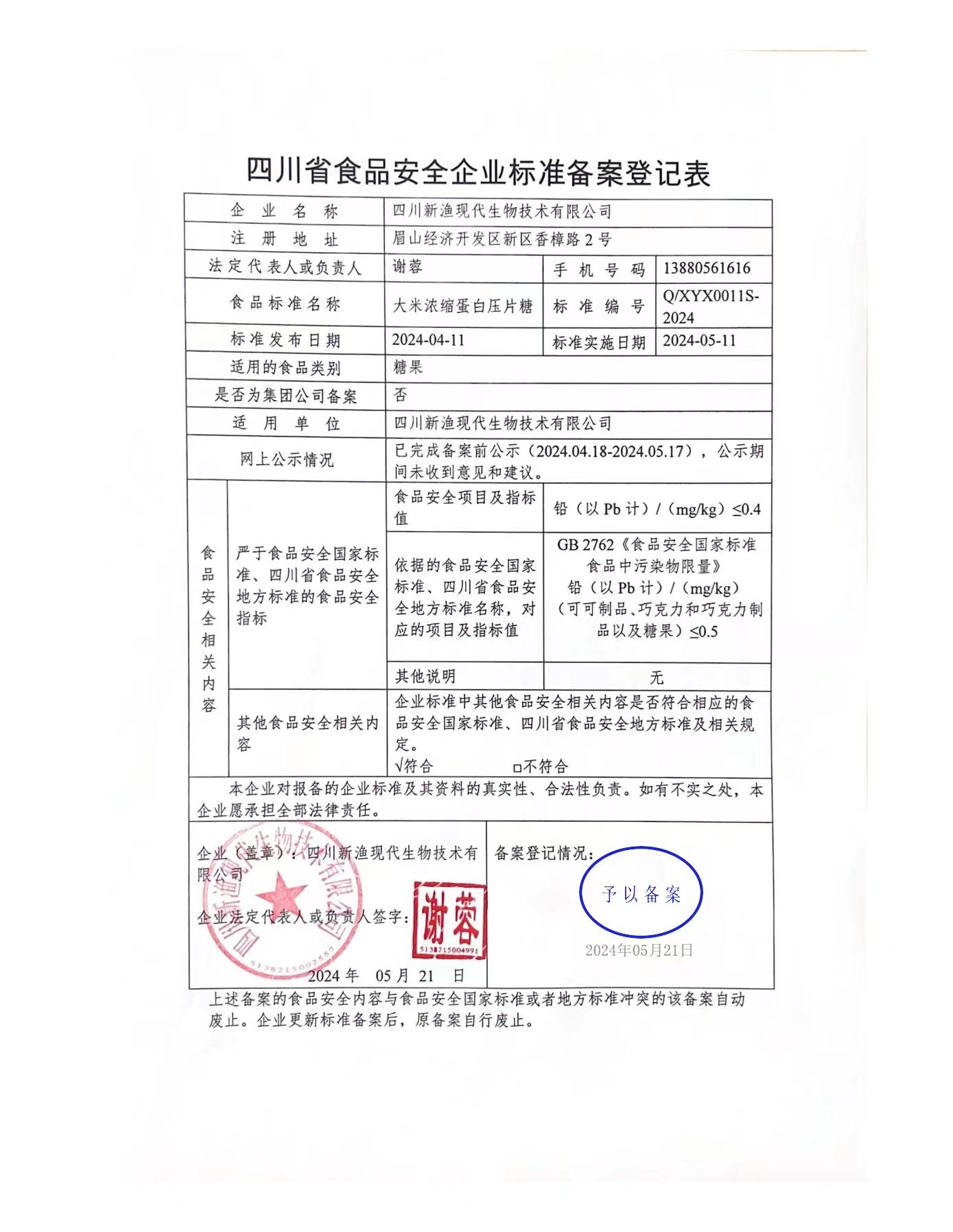 四川新渔现代生物技术有限公司-大米浓缩蛋白压片糖
