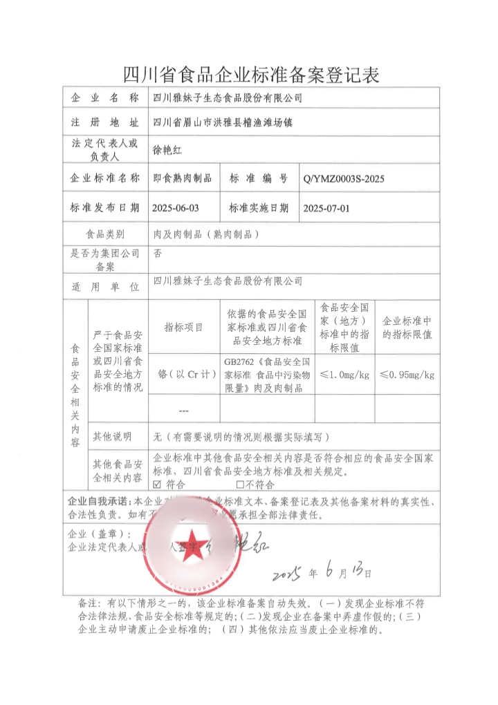 四川雅妹子生态食品股份有限公司-即食熟肉制品