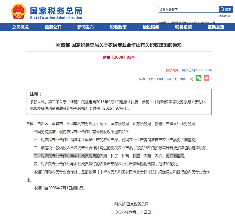 财政部 国家税务总局关于农民专业合作社有关税收政策的通知