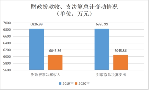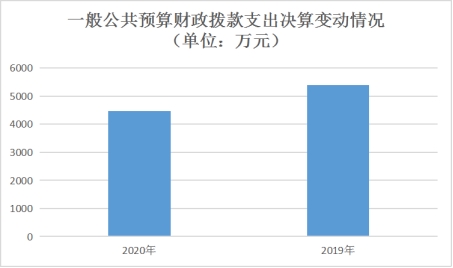 (图4:财政拨款收、支决算总计变动情况) 2020年一般公共预算财政拨款支出4,476.43万元,占本年支出合计的74.04%。与2019年相比,一般公共预算财政拨款减少915.42万元,下降16.98%。主要变动原因是受疫情影响,开支减少。