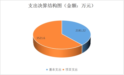 (图3:支出决算结构图) 2020年财政拨款收、支总计6,045.86万元。与2019年相比,财政拨款收、支总计各减少781.13万元,下降11.44%。主要变动原因是受疫情影响,开展的项目减少。