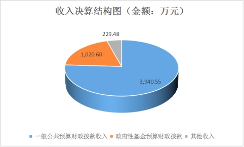 (图1:收、支决算总计变动情况图) 2020年本年收入合计5,190.63万元,其中:一般公共预算财政拨款收入3,940.55万元,占75.92%;政府性基金预算财政拨款收入1,020.6万元,占19.66%;其他收入229.48万元,占4.42%。