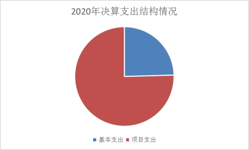 三、 支出决算情况说明 2020年本年支出合计3194.47万元,其中:基本支出784.41万元,占24.56%;项目支出2410.06万元,占75.44%。
