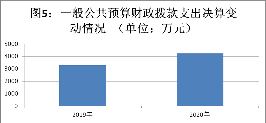 五、一般公共预算财政拨款支出决算情况说明 (一)一般公共预算财政拨款支出决算总体情况 2020年一般公共预算财政拨款支出4222.38万元,占本年支出合计的87.84%。与2019年相比,一般公共预算财政拨款增加934.65万元,增长28.43%。主要变动原因是2020年用于龚村教育培训中心建设项目支出的一般公共预算财政拨款增加。