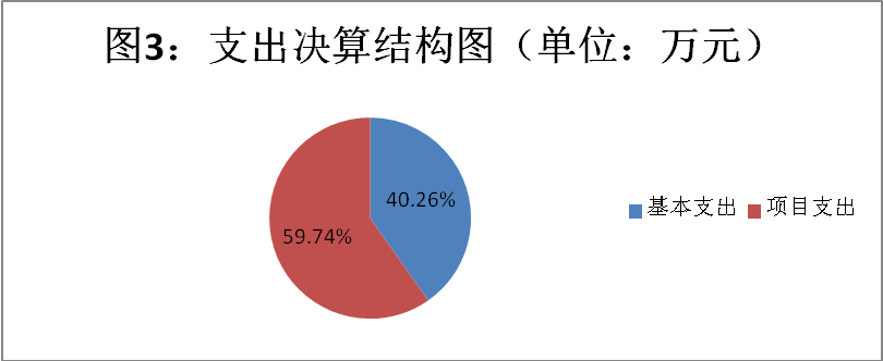 三、支出决算情况说明 2020年本年支出合计4806.94万元,其中:基本支出1935.17万元,占40.26%;项目支出2871.77万元,占59.74%;上缴上级支出0万元;经营支出0万元;对附属单位补助支出0万元。