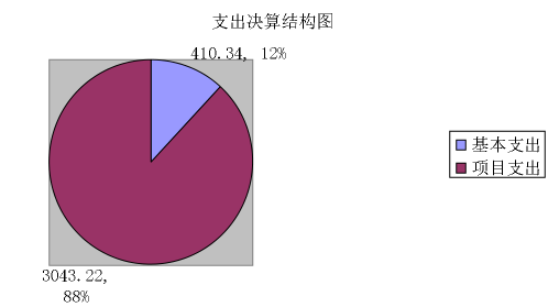 2021年本年支出合计3453.57万元,其中:基本支出410.34万元,占12%;项目支出3043.22万元,占88%;上缴上级支出0万元,占0%;经营支出0万元,占0%;对附属单位补助支出0万元,占0%。 (图3:支出决算结构图)(饼状图) 2021年财政拨款收、支总计3453.57万元。与2020年相比,财政拨款收、支总计各增加2912.48万元,增长84%。主要变动原因是市综合档案馆建设项目于2021年7月顺利开工,市档案馆正进行局部基础、二层钢筋绑扎,天府新区档案馆正进行七层底板钢筋绑扎,技术楼已完成二层底板混凝土浇筑。