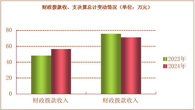 四、财政拨款收入支出决算总体情况说明 2024年度财政拨款收入、支出总计均为4400.45万元。与2023年度相比,财政拨款收入总计、支出总计各增加426.34万元,增长10.73%。主要变动原因是人员经费增加。 (图4:财政拨款收、支决算总计变动情况)(柱状图)