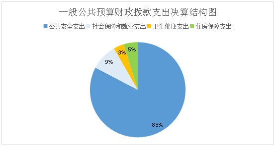 (图5:一般公共预算财政拨款支出决算变动情况图)(柱状图) (二)一般公共预算财政拨款支出决算结构情况。 2024年一般公共预算财政拨款支出82.99万元,主要用于以下方面:公共安全支出68.63万元,占82.7%;社会保障和就业支出7.49万元,占9.03%;卫生健康支出2.93万元,占3.53%;住房保障支出3.94万元,占4.75%。 (图6:一般公共预算财政拨款支出决算结构图)(饼状图) (三)一般公共预算财政拨款支出决算具体情况。 2024年一般公共预算支出决算数为82.99万元,完成预算100%。其中: 1.公共安全支出(类)司法(款)事业运行(项):支出决算为45.33万元,完成预算100%。 2.公共安全支出(类)司法(款)其他司法支出(项):支出决算为23.31万元,完成预算100%。 3.社会保障和就业支出(类)行政事业单位养老支出(款)机关事业单位基本养老保险缴费支出(项):支出决算为4.88万元,完成预算100%。 4.社会保障和就业支出(类)行政事业单位养老支出(款)机关事业单位职业年金缴费支出(项):支出决算为2.44万元,完成预算100%。 5.社会保障和就业支出(类)其他社会保障和就业支出(款)其他社会保障和就业支出(项):支出决算为0.17万元,完成预算100%。 6.卫生健康支出(类)行政事业单位医疗(款)事业单位医疗(项):支出决算为2.93万元,完成预算100%。 7.住房保障支出(类)住房改革支出(款)住房公积金(项):支出决算为3.94万元,完成预算100%。 六、一般公共预算财政拨款基本支出决算情况说明 2024年一般公共预算财政拨款基本支出61.81万元,其中: 人员经费55万元,主要包括:基本工资、津贴补贴、奖金、绩效工资、机关事业单位基本养老保险缴费、职业年金缴费、其他社会保障缴费、住房公积金等。 公用经费6.81万元,主要包括:办公费、邮电费、差旅费、工会经费、其他交通费、其他商品和服务支出、办公设备购置等。 七、财政拨款“三公”经费支出决算情况说明 (一)“三公”经费财政拨款支出决算总体情况说明 2024年“三公”经费财政拨款支出决算为0万元。 (二)“三公”经费财政拨款支出决算具体情况说明 2024年“三公”经费财政拨款支出决算中,因公出国(境)费支出决算0万元;公务用车购置及运行维护费支出决算0万元;公务接待费支出决算0万元。 1.因公出国(境)经费支出0万元。 2.公务用车购置及运行维护费支出0万元。 3.公务接待费支出0万元。 八、政府性基金预算支出决算情况说明 2024年政府性基金预算拨款支出0万元。 九、国有资本经营预算支出决算情况说明 2024年国有资本经营预算拨款支出0万元。 十、其他重要事项的情况说明 (一)机关运行经费支出情况 2024年,眉山市仲裁服务中心机关运行经费支出0万元。 (二)政府采购支出情况 2024年,眉山市仲裁服务中心政府采购支出总额0万元。 (三)国有资产占有使用情况 截至2024年12月31日,眉山市仲裁服务中心共有车辆0辆。 (四)预算绩效管理情况。 根据预算绩效管理要求,本单位在2024年度预算编制阶段,组织对仲裁工作项目开展了预算事前绩效评估,对该项目编制了绩效目标,预算执行过程中,对该项目开展绩效监控,组织对该项目开展绩效自评,绩效自评表详见第四部分附件。 第三部分名词解释 1.财政拨款收入:指单位从同级财政部门取得的财政预算资金。 2.公共安全支出(类)司法(款)事业运行(项):指反映事业单位的基本支出。 3.公共安全支出(类)司法(款)其他司法支出(项):指反映用于仲裁工作开展的支出。 4.社会保障和就业支出(类)行政事业单位养老支出(款)机关事业单位基本养老保险缴费支出(项):指单位实施养老保险制度由单位缴纳的养老保险费的支出。 5.社会保障和就业支出(类)行政事业单位养老支出(款)机关事业单位职业年金缴费支出(项):指单位实施养老保险制度由单位缴纳的职业年金的支出。 6.卫生健康支出(类)行政事业单位医疗(款)事业单位医疗(项):指财政集中安排的事业单位基本医疗保险缴费经费。 7.住房保障支出(类)住房改革支出(款)住房公积金(项):指行政事业单位按基本工资和津贴补贴以及规定比例为职工缴纳的住房公积金。 8.基本支出:指为保障机构正常运转、完成日常工作任务而发生的人员支出和公用支出。 9.项目支出:指在基本支出之外为完成特定行政任务和事业发展目标所发生的支出。 10.“三公”经费:指部门用财政拨款安排的因公出国(境)费、公务用车购置及运行费和公务接待费。其中,因公出国(境)费反映单位公务出国(境)的国际旅费、国外城市间交通费、住宿费、伙食费、培训费、公杂费等支出;公务用车购置及运行费反映单位公务用车车辆购置支出(含车辆购置税)及租用费、燃料费、维修费、过路过桥费、保险费等支出;公务接待费反映单位按规定开支的各类公务接待(含外宾接待)支出。 11.事业运行经费:为保障事业单位运行用于购买货物和服务的各项资金,包括办公及印刷费、邮电费、差旅费、福利费、日常维修费、专用材料及一般设备购置费、办公用房水电费、办公用房取暖费、办公用房物业管理费、其他交通费用以及其他费用。 第四部分附件 部门预算项目支出绩效自评表(2024年度)