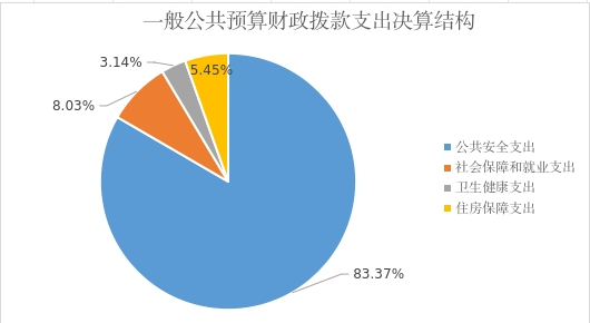 (二)一般公共预算财政拨款支出决算结构情况 2024年度一般公共预算财政拨款支出1884.52万元,主要用于以下方面:一般公共服务支出1571.21万元,占83.37%;社会保障和就业支出151.39万元,占8.03%;卫生健康支出59.22万元,占3.14%;住房保障支出102.7万元,占5.45%; (三)一般公共预算财政拨款支出决算具体情况 2024年度一般公共预算财政拨款支出决算数为1884.52,完成预算100%。其中: 公共安全支出(204)检察(04)行政运行(01): 支出决算为874.86万元,完成预算100%,决算数等于预算数;公共安全支出(204)检察(04)一般行政事务管理(02)支出决算为408.45万元,完成预算100%,决算数等于预算数;公共安全支出(204)检察(04)其他检察支出(99)支出决算为272.49万元,完成预算100%,决算数等于预算数;公共安全支出(204)其他公共安全支出(99): 支出决算为15.4万元,完成预算100%,决算数等于预算数;社会保障和就业支出(208)行政事业单位养老支出(05)机关事业单位基本养老保险缴费支出(05): 支出决算为99.31万元,完成预算100%,决算数等于预算数;社会保障和就业支出(208)行政事业单位养老支出(05)机关事业单位职业年金缴费支出(06): 支出决算为52.08万元,完成预算100%,决算数等于预算数;卫生健康支出(210)行政事业单位医疗(11)行政单位医疗(01): 支出决算为59.22万元,完成预算100%,决算数等于预算数;住房保障支出(221)住房改革支出(02)住房公积金(01): 支出决算为102.7万元,完成预算100%,决算数等于预算数。 六、一般公共预算财政拨款基本支出决算情况说明 2024年度一般公共预算财政拨款基本支出1188.18万元,其中: 人员经费959.67万元,主要包括:基本工资、津贴补贴、奖金、伙食补助费、绩效工资、机关事业单位基本养老保险缴费、职业年金缴费、其他社会保障缴费、其他工资福利支出、离休费、退休费、抚恤金、生活补助、医疗费补助、奖励金、住房公积金、其他对个人和家庭的补助支出等。