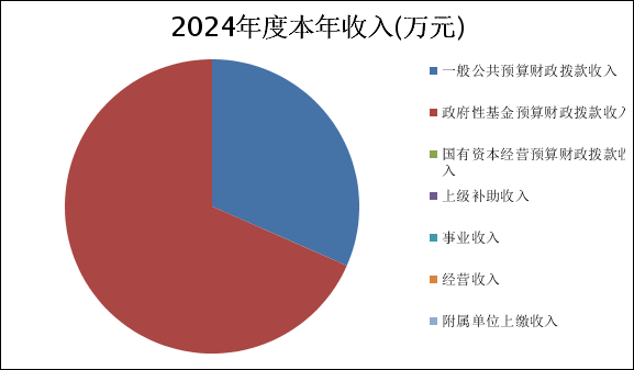 二、收入决算情况说明 2024年度本年收入合计2632.89万元,其中:一般公共预算财政拨款收入831.92万元,占31.59%;政府性基金预算财政拨款收入1800.97万元,占68.4%%;国有资本经营预算财政拨款收入0万元,占0%;上级补助收入0万元,占0%;事业收入0万元,占0%;经营收入0万元,占0%;附属单位上缴收入0万元,占0%;其他收入0万元,占0%。