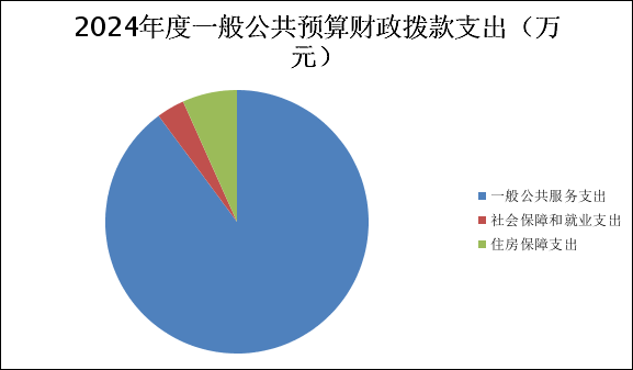 2024年度一般公共预算财政拨款支出831.92万元,占本年支出合计的31.59%。与2023年度相比,一般公共预算财政拨款支出增加358.28万元,增长43%。主要变动原因是市综合档案馆投入运营,新馆体量大、功能更齐全、专用设施设备大幅增加,运行成本较老馆大幅提升。(图5:一般公共预算财政拨款支出决算变动情况)(柱状图) (二)一般公共预算财政拨款支出决算结构情况 2024年度一般公共预算财政拨款支出831.92万元,主要用于以下方面:一般公共服务支出747.59万元,占89.9%;教育支出0万元,占0%;科学技术支出0万元,占0%;文化旅游体育与传媒支出0万元,占0%;社会保障和就业支出28.49万元,占3.4%;卫生健康支出0万元,占0%;住房保障支出55.84万元,占6.7%。