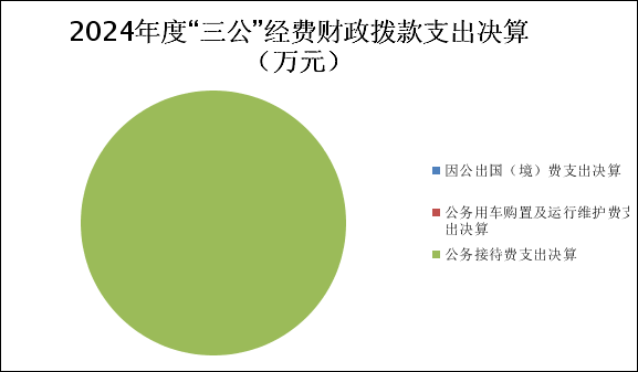 (图6:一般公共预算财政拨款支出决算结构)(饼状图) (三)一般公共预算财政拨款支出决算具体情况 2024年度一般公共预算财政拨款支出决算数为831.92,完成预算100%。其中: 1.一般公共服务(类)档案事务(款)行政运行(项):支出决算为364.52万元,完成预算100%,决算数与预算数持平。 2.一般公共服务(类)档案事务(款)机关服务(项): 支出决算为25.17万元,完成预算100%,决算数与预算数持平。 3.一般公共服务(类)档案事务(款)档案馆(项): 支出决算为130.47万元,完成预算100%,决算数与预算数持平。 4.一般公共服务(类)档案事务(款)其他档案事务支出(项): 支出决算为227.44万元,完成预算100%,决算数与预算数持平。 5.社会保障和就业支出(类)行政事业单位养老支出(款)机关事业单位基本养老保险缴费支出(项):支出决算为6万元,完成预算100%,决算数与预算数持平。 6.社会保障和就业(类)行政事业单位养老支出(款)机关事业单位职业年金缴费支出(项):支出决算为22.49万元,完成预算100%,决算数与预算数持平。 7.住房保障(类)住房改革支出(款)住房公积金(项):支出决算为55.84万元,完成预算100%,决算数与预算数持平。 六、一般公共预算财政拨款基本支出决算情况说明 2024年度一般公共预算财政拨款基本支出495.08万元,其中: 人员经费349.2万元,主要包括:基本工资、津贴补贴、奖金、伙食补助费、绩效工资、机关事业单位基本养老保险缴费、职业年金缴费、其他社会保障缴费、其他工资福利支出、离休费、退休费、抚恤金、生活补助、医疗费补助、奖励金、住房公积金、其他对个人和家庭的补助支出等。 七、财政拨款“三公”经费支出决算情况说明 (一)“三公”经费财政拨款支出决算总体情况说明 2024年度“三公”经费财政拨款支出决算为0.28万元,完成预算35%,较上年度减少0.27万元,下降49%。决算数小于预算数的主要原因是认真贯彻落实党政机关要坚持“过紧日子”的要求,从严控制“三公”经费开支。 (二)“三公”经费财政拨款支出决算具体情况说明 2024年度“三公”经费财政拨款支出决算中,因公出国(境)费支出决算0万元,占0%;公务用车购置及运行维护费支出决算0万元,占0%;公务接待费支出决算0.28万元,占100%。具体情况如下: (图7:“三公”经费财政拨款支出结构)(饼状图)