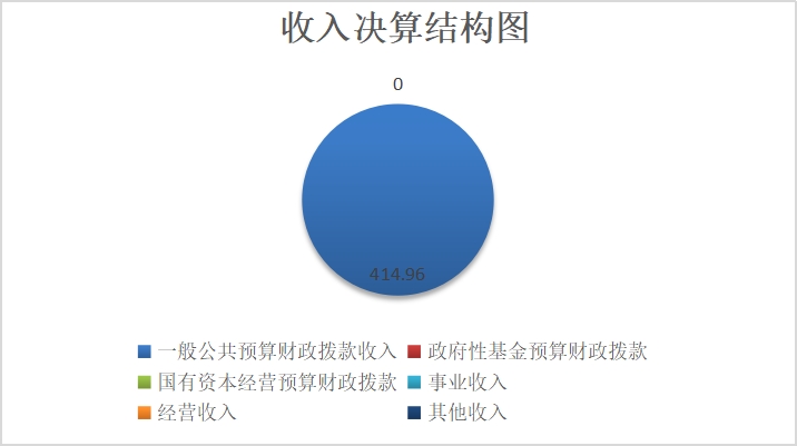 2024年度本年收入合计414.96万元,其中:一般公共预算财政拨款收入414.96万元,占100%;政府性基金预算财政拨款收入0万元,占0%;国有资本经营预算财政拨款收入0万元,占0%;上级补助收入0万元,占0%;事业收入0万元,占0%;经营收入0万元,占0%;附属单位上缴收入0万元,占0%;其他收入0万元,占0%。