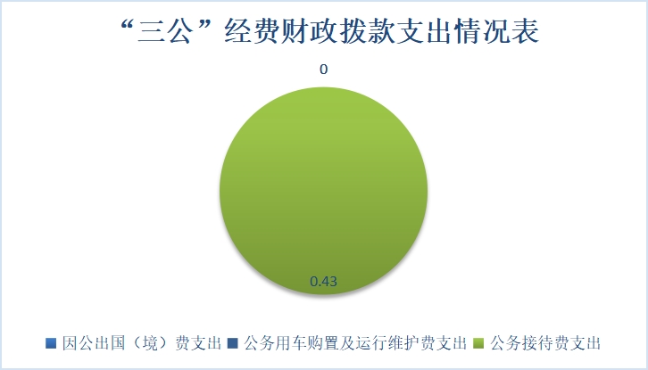2024年度“三公”经费财政拨款支出决算为0.43万元,完成预算100%,较上年度减少0.11万元,下降19.77%。决算数小于预算数的主要原因是厉行节俭,严控“三公”经费支出。 2024年度“三公”经费财政拨款支出决算中,因公出国(境)费支出决算0万元,占0%;公务用车购置及运行维护费支出决算0万元,占0%;公务接待费支出决算0.43万元,占100%。具体情况如下: