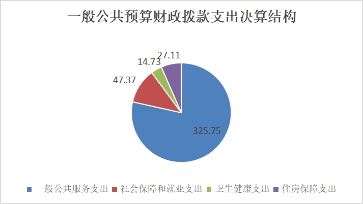 2024年度一般公共预算财政拨款支出414.96万元,主要用于以下方面:一般公共服务支出325.75万元,占78.50%;教育支出0万元,占0%;科学技术支出0万元,占0%;文化旅游体育与传媒支出0万元,占0%;社会保障和就业支出47.37万元,占11.42%;卫生健康支出14.73万元,占3.55%;住房保障支出27.11万元,占6.53%。